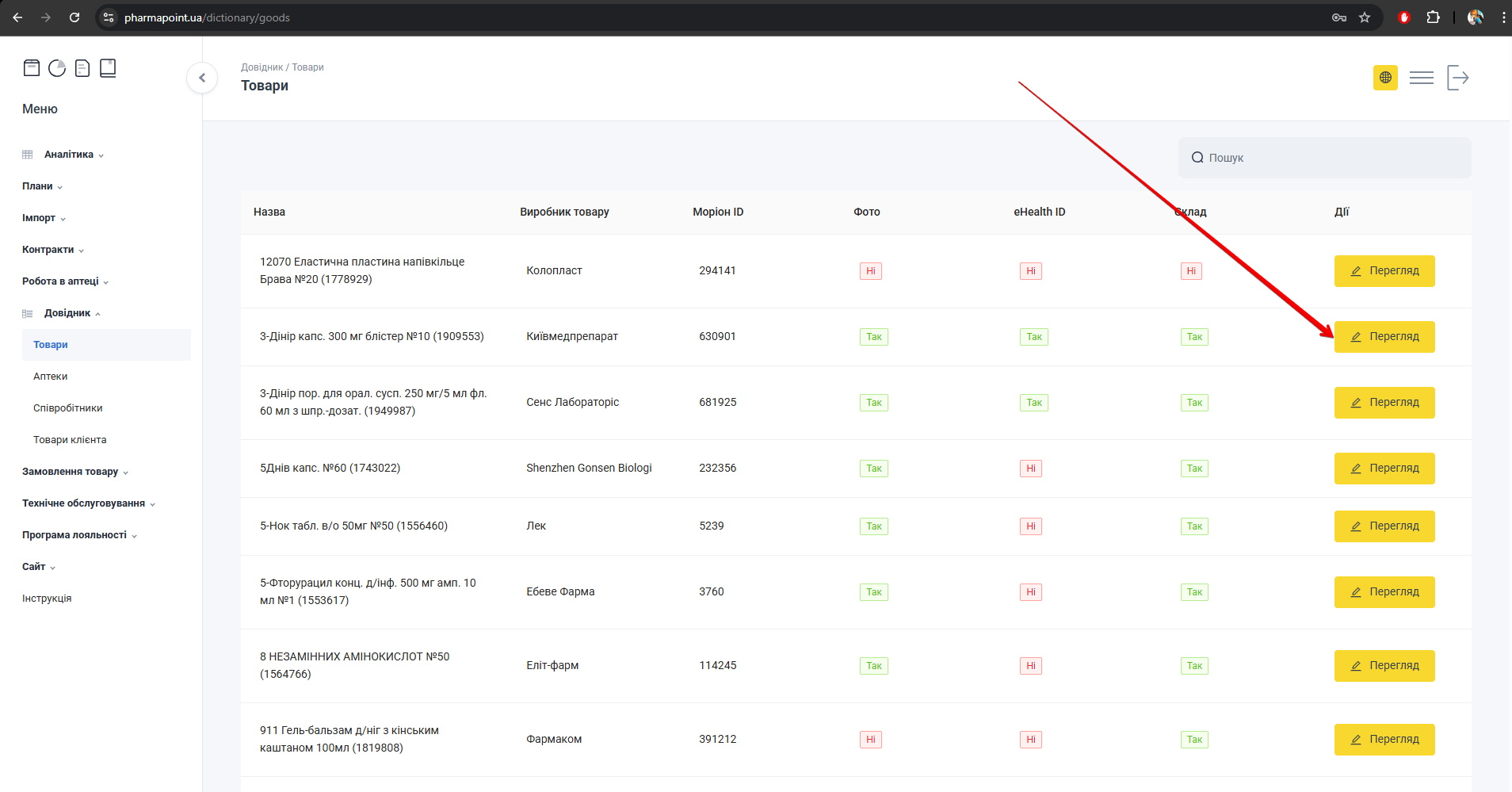 Розділ Товари є довідником товарів Pharmapoint. Користувач може додавати та редагувати інформацію про товари на Pharmapoint.